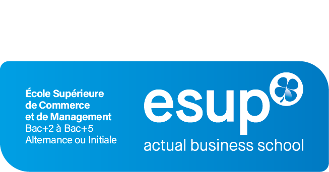 La signature s’intègre dans un patch dédié, garantissant une cohérence avec le logotype et l’identité d’ESUP. Ce bloc signature, souvent traité en dégradé de couleur, offre une flexibilité de composition, s’adaptant facilement aux différents supports et mises en page.
